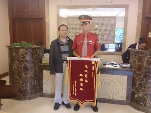 9月28日上午,落水老人家屬向服務(wù)中心送來(lái)了一面錦旗及三個(gè)禮包,并當面向第一時(shí)間跳入湖中對老人施救的秩序維護員韓中林表示感謝。韓中林堅決而不失委婉地謝絕了業(yè)主的禮包,堅定地說(shuō):我相信無(wú)論是誰(shuí)第一時(shí)間趕到現場(chǎng),都會(huì )像我這樣做的,因為這是我們物業(yè)人應盡的職責和義務(wù)!