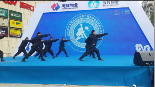 在比賽間隙,云立方項目還精心組織了消防應急演練表演,員工們用專(zhuān)業(yè)和投入,再現了他們面對緊急情況時(shí)的沉著(zhù)和冷靜;秩序維護員們表演了擒敵拳和倒功,一招一式孔武有力,具有很強的震懾力;來(lái)自泛悅國際的員工將一根普通的木棍舞的出神入化,讓人嘆服;多才多藝的五興員工還自編自演了《我的未來(lái)不是夢(mèng)》,優(yōu)美的舞姿結合物業(yè)工作的實(shí)際,給人耳目一新的感覺(jué)。