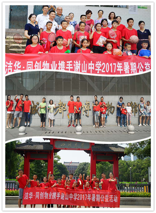 活動(dòng)中,潔華物業(yè)愛(ài)心團隊帶領(lǐng)孩子們參觀(guān)了極地世界海洋館、成都博物館、四川大學(xué)等多個(gè)地方,并在電影院、西餐館等地感受現代文化;此次活動(dòng)也受到廣大愛(ài)心業(yè)主的支持,紛紛向謝山中學(xué)捐助體育器材,并在當天送往該中學(xué)。此次參觀(guān)學(xué)習,拓寬了孩子的知識面,增長(cháng)了見(jiàn)識,為樹(shù)立正確的人生觀(guān)起到了積極作用,并讓孩子們感受到了濃濃愛(ài)意。