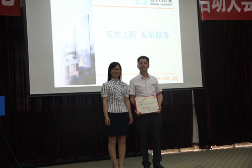 啟動(dòng)會(huì )以全體參會(huì )人員歌唱《快樂(lè )五興》拉開(kāi)序幕,歌聲振奮激昂。會(huì )上,首先由公司項目運營(yíng)部總監作《關(guān)于客戶(hù)滿(mǎn)意度要求與措施》的講述,分別從客戶(hù)滿(mǎn)意度調查的意義、回望2016年滿(mǎn)意度、如何提升客戶(hù)滿(mǎn)意度、2017年滿(mǎn)意度目標四個(gè)方面進(jìn)行詳細闡述。其次,由五興公司副總經(jīng)理詳細分析客戶(hù)服務(wù)工作及公司品質(zhì)提升舉措的成果,并對今后工作的重點(diǎn)與方向做了安排。隨后,由公司黨總支書(shū)記為四川省首屆物業(yè)職業(yè)技能競賽中脫穎而出的匠人何光明頒發(fā)榮譽(yù)證書(shū)。最后,五興公司顧問(wèn)對2017上半年工作以及本次大會(huì )進(jìn)行總結。
