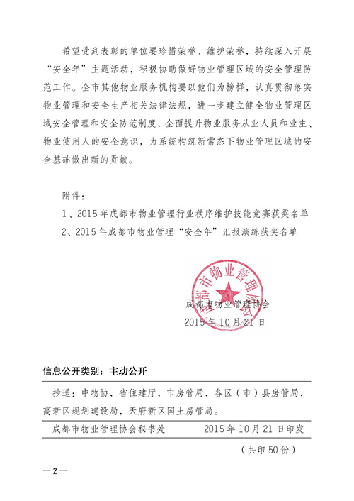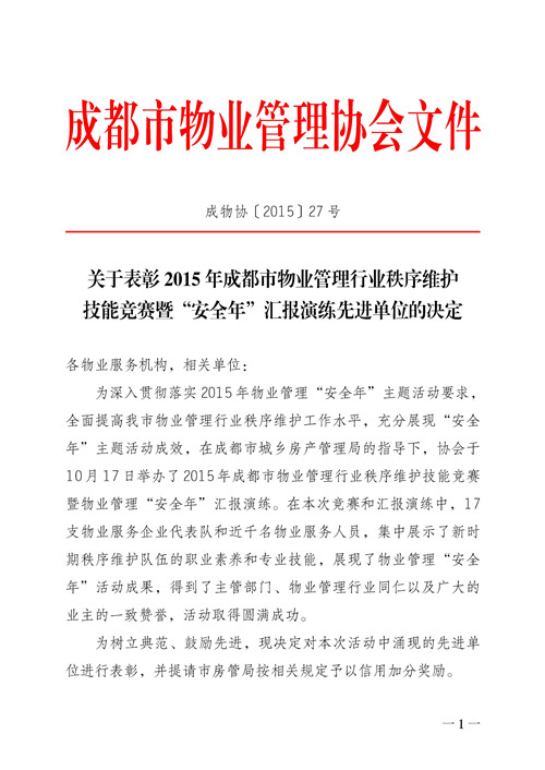 上一條:關(guān)于舉辦“北京大學(xué)物業(yè)服務(wù)企業(yè)高層戰略提升(成都)研修班”的通知 下一條:關(guān)于對成都逸家物業(yè)管理有限公司的通報